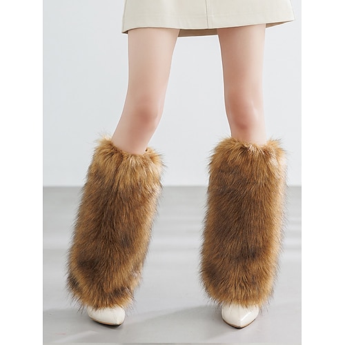 scaldamuscoli in pelliccia sintetica da donna, soffici copristivali alti fino al ginocchio, eleganti accessori per costumi da festa invernali, abiti natalizi e per le feste