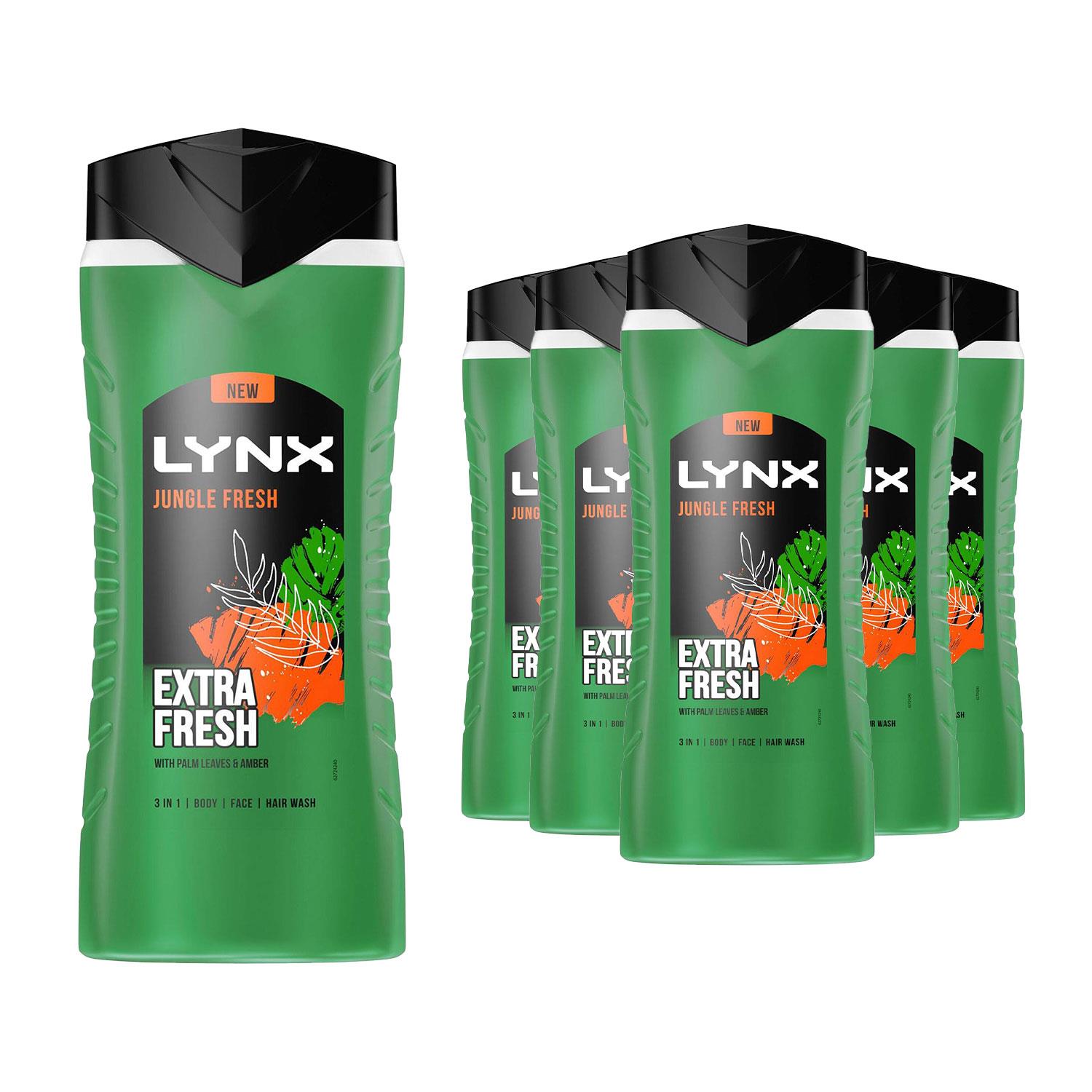 Lynx Mens 3in1 Body, Face & Hair Wash Shower Gel Extra Fresh Jungle 500ml, 18pk - One Size | Lynx Sale | Discount Designer Brands