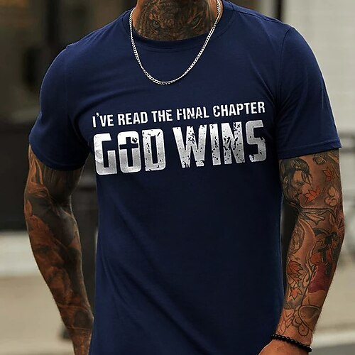 Männer Kurzarm Grafik T-Shirt 'ICH HABE DAS LETZTE KAPITEL GELESEN GOTT GEWINNT' Christlicher Glauben Tee