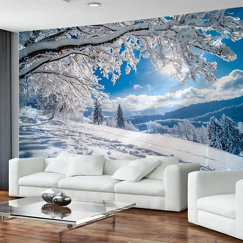 Winter Outdoor Snow Pattern Tapestry, Large Wall Hanging Mural Decoration, Photography Background Fabric, Home Furnishing for Bedroom, Living Room, or Office