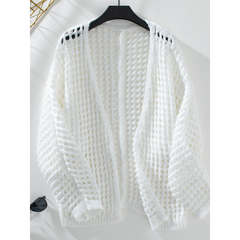 Women's Cardigan Daily Geometric Crochet Open Front Knitted Long Sleeve Long Tops Knit Outdoor Daily Going out White Beige Summer Fall