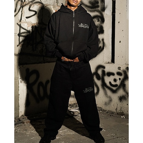 Herren Trainingsanzug Outfit-Set Kapuzenpullover Set Kapuzenpullover Outdoor Täglich Sport Kordelzug Tasche 3D-Druck Grafik Schwarz Polyester Sportkleidung Mode Streetwear Frühling
