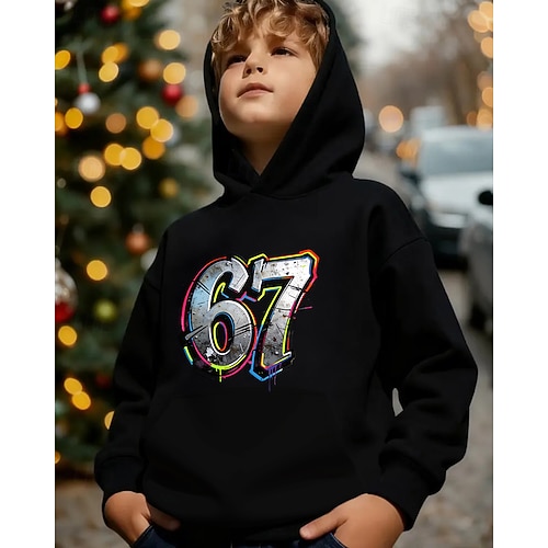 Unisex 3D Grafik Lustiger Slang 67 Kapuzensweatshirt Pullover Langarm 3D-Druck Frühling Herbst Sport Mode Streetwear Kinder 4-12 Jahre Mit Kapuze Lässig Täglich Outdoor Normale Passform