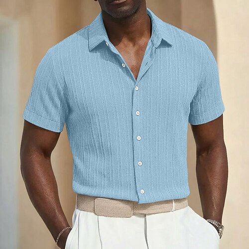 Per uomo Testurizzato Maglia da golf Affari Casuale Classico Manica Corta Moda Moderno Tinta unica Hawaii Bottoni Estate Primavera Vestibilità regolare Nero Bianco Verde Cachi Testurizzato