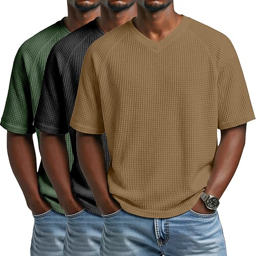 3 pezzi t-shirt da uomo waffle maglietta a maniche corte scollo a V estate tinta unita testurizzata alla moda designer casual multipack maniche raglan casual quotidiano esterno blu bianco maglietta
