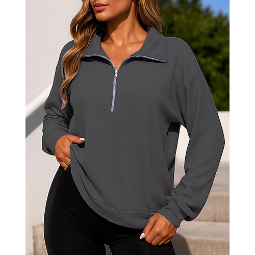 Per donna Felpa con zip Felpa pullover Manica Lunga Top Athleisure Autunno Tinta unita All'aperto Viaggio Sportivo abbigliamento sportivo Abbigliamento sportivo Nero Bianco Rosa