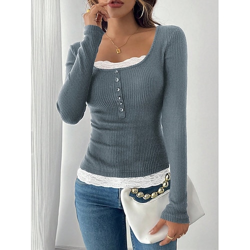 Per donna Blusa Tinta unica Elegante Casual Manica Lunga Collo quadrato Top Regolari Quotidiano Patchwork Nero Vino Verde militare Blu Marrone Primavera Autunno Inverno