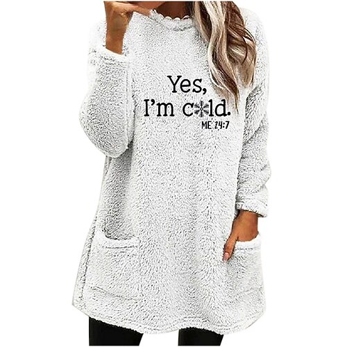 Per donna Felpa Pullover Lettera Casual Manica Lunga Girocollo Top lunghi Streetwear Abbigliamento Quotidiano Tasca Stampato Blu Nero Bianco Rosa Verde militare Autunno Inverno