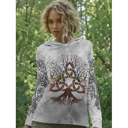 Per donna Maglietta Grafico Geometria Vintage Elegante Classico Manica Lunga Con Cappuccio Top Regolari Quotidiano Weekend Stampato Blu Nero Beige Primavera