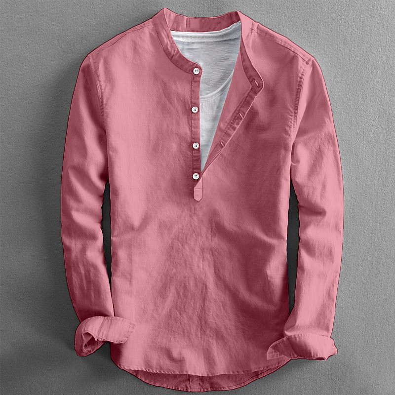 Men's Popover Shirt Summer Shirt Beach Wear Casual Shirt Band Collar Shirt Plain Vacation Casual Black White Pink Orange Long Sleeve Collar Spring Summer Clothing Apparel