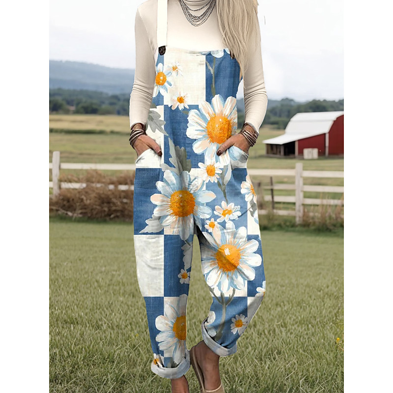 Women's Overall Active Floral Sleeveless Straight Round Neck with Pocket Vacation Daily Loose Fit Pink Blue Orange Summer
