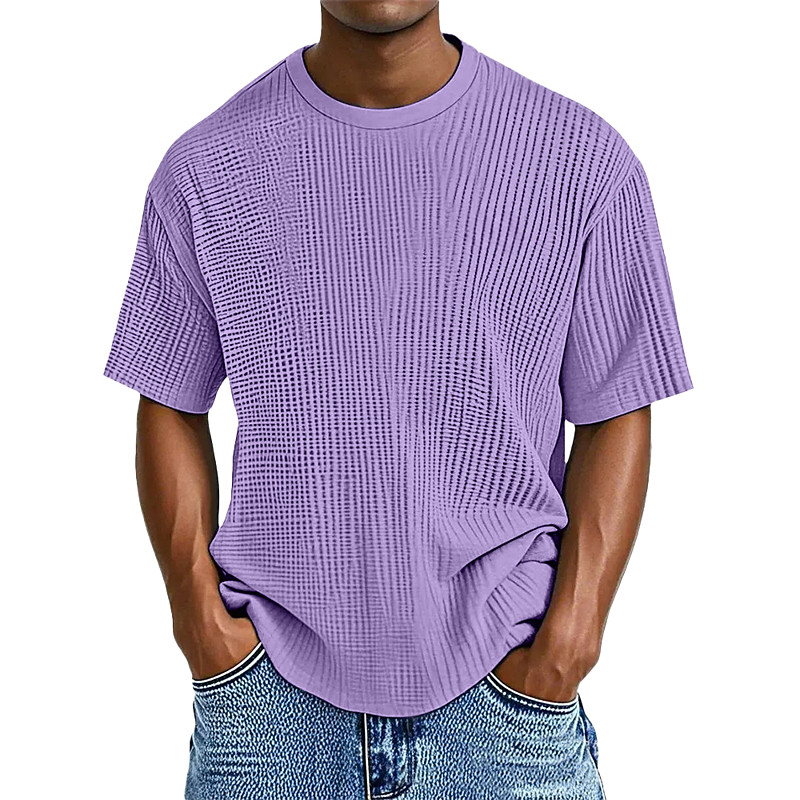 Men Waffle T-shirt Tee Top Short Sleeve Crew Neck Summer Spring All Seasons Solid Color Textured Fashion Designer Casual Knitted Casual Daily Outdoor Light Blue Light Green Dark Blue Top Tee for Men