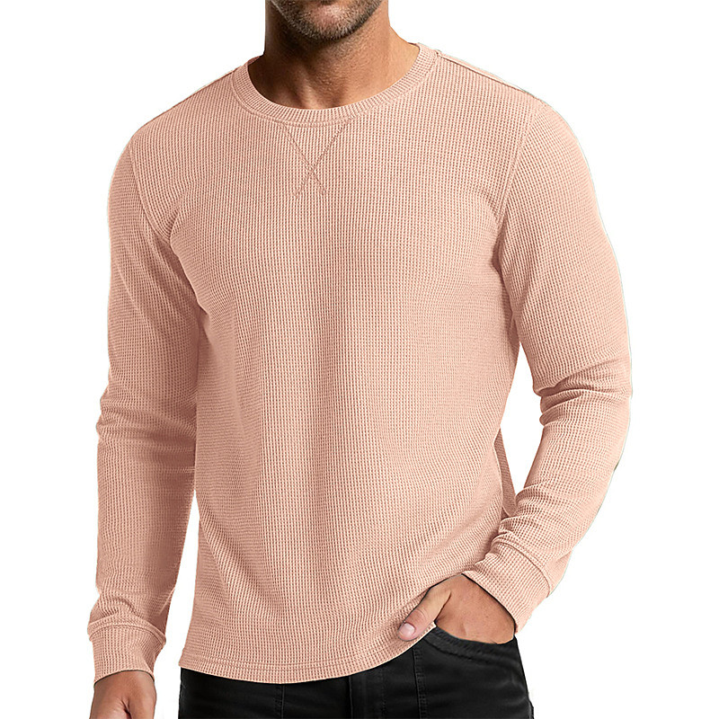 Men's Waffle T-shirt T Shirt Waffle Henley Shirt Long Sleeve Crew Neck Fall Winter Solid Color Plain Traditional / Vintage Casual Basic Outdoor Home Sports Outdoor Light Blue Black White Top Tee