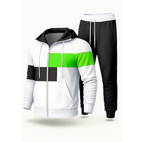 Per uomo Tuta da 2 pezzi Felpa con cappuccio Lounge Set di tute da ginnastica Blocco di colori Completo Abbigliamento Primavera Nero Rosso Palestra Allenamento Corsa Vita Alta Leggero Di tendenza
