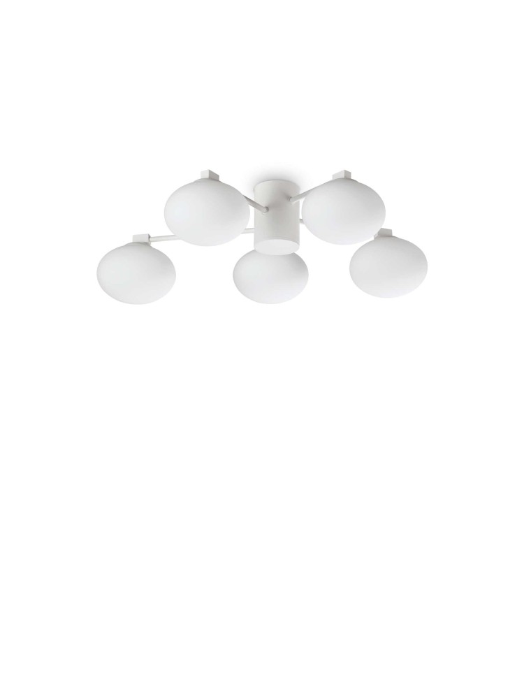 hermes pl5 d60, weiße metall-deckenleuchte mit lampenschirmen aus opalglas, ideal lux
