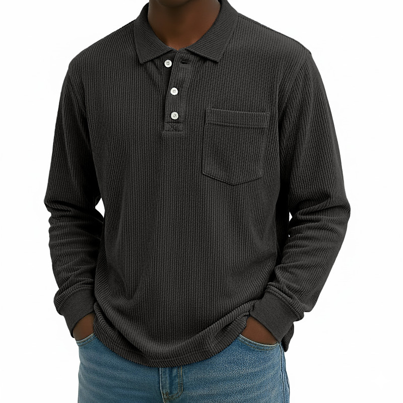 Men's Polo Corduroy Shirt Casual Sports Lapel Long Sleeve Fashion Basic Color Block Textured Buttons Warm Fall Winter Regular Fit Black Dark Blue Green Light Blue Khaki Polo