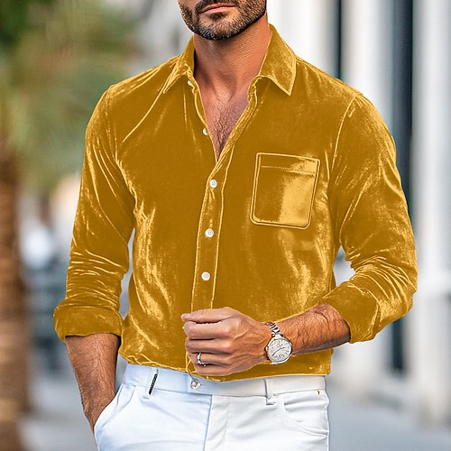 Per uomo Camicia Camicia casual Camicia di Natale Camicia di velluto Giallo Vino Blu reale Verde Manica Lunga Tinta unica Semplice Colletto a Camicia Carnevale Natale Bottoni Abbigliamento Natale