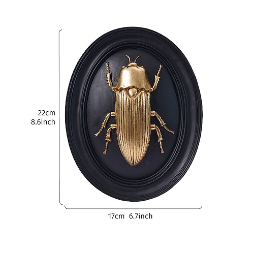 decorazione da parete a forma di scarabeo dorato, ornamento di insetto con cornice ovale nera, scultura in resina ABS fatta a mano, da collezione per gli appassionati di insetti, ideale per musei di