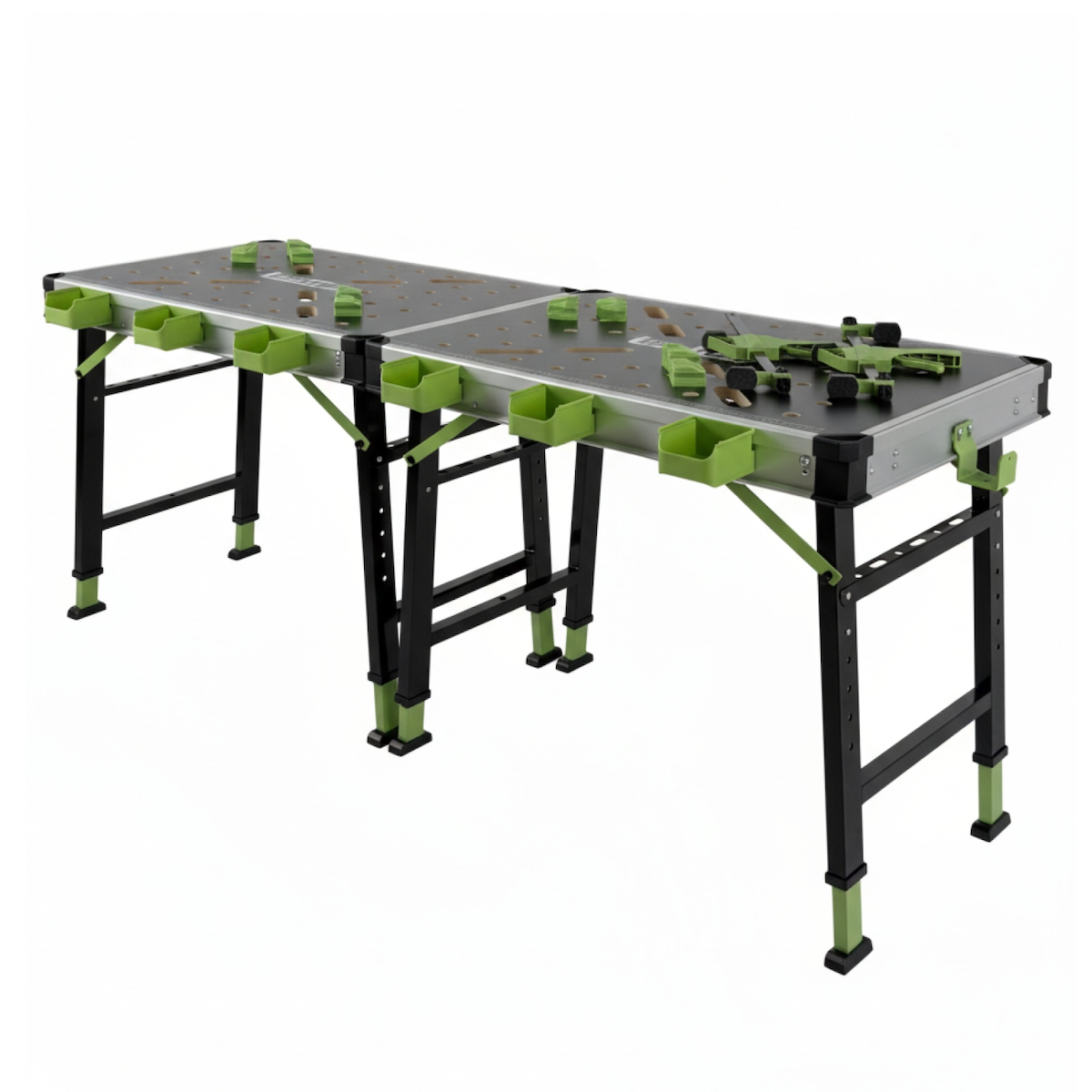 2 x Werkbank klappbar höhenverstellbar bis 90 cm Multifunktionstisch Werkzeugboxen Backen Spanner