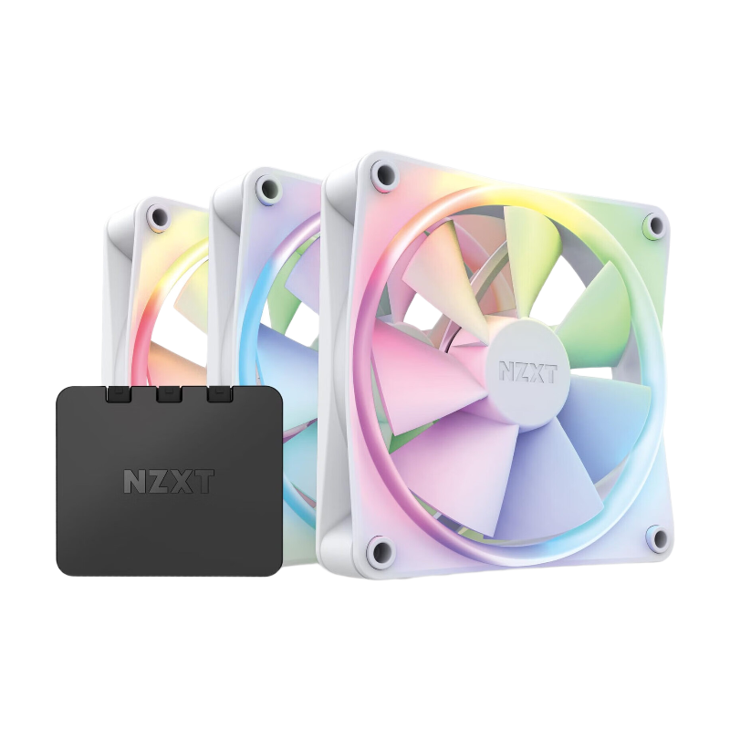 NZXT F120 RGB-Lüfter 3er-Pack mit Controller - 120 mm PC-Gehäuselüfter, 18 anpassbare RGB-LEDs pro Lüfter, flüsterleiser Kühlung, ausgeglichener statischer Druck und Luftdurchsatz, CAM-Software-Sync - Weiß