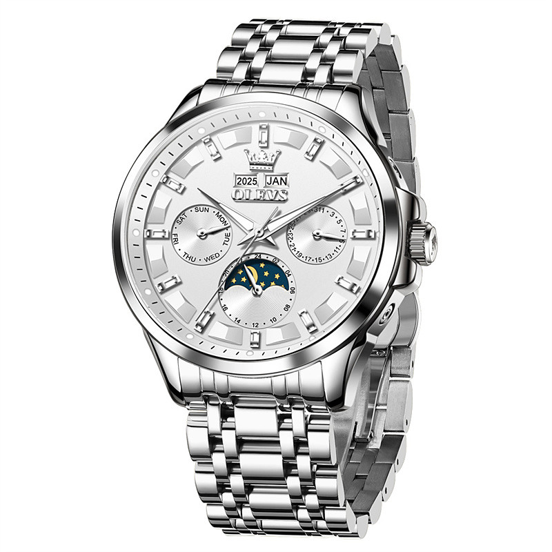 The New Olevs Men'S Business Watch Features Luminous Perpetual Calendar Moon Phase And Calendar. It Is An Automatic Mechanical Men'S Watch That Is Fashionable Casual And Multi-Functional For Men'S