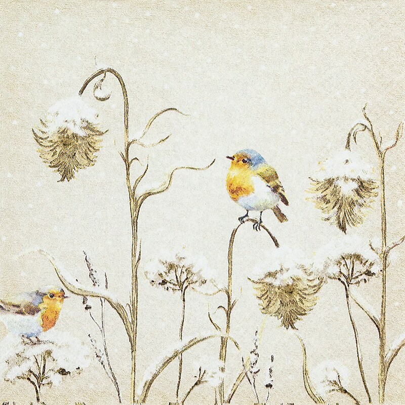Home Fashion, Robin in Thistles, Lunch-Servietten aufgefaltetes Maß 33 cm x 33 cm, im Viertelfalz, 20 Stück pro Pack