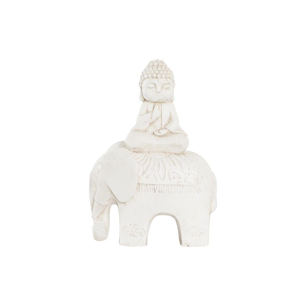 Dekorativ figur - elefant i hvid magnesium, orientalsk, ældet overflade (40 × 23 × 56 cm)