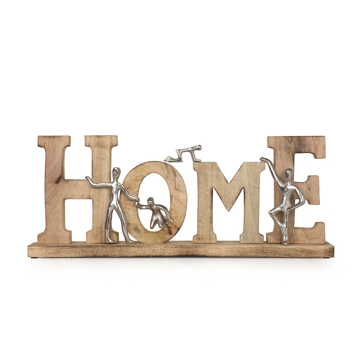 Moritz Dekofigur Home 24 cm aus Mangoholz und Aluminium Skulptur mit Figuren Symbol für Familie und Zusammenhalt Handarbeit modern auf Holzsockel Unikat