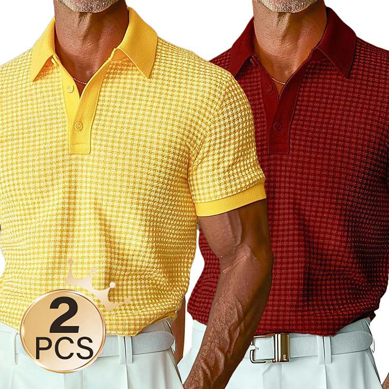Men's Waffle Polo Shirts Textured Vacation Casual Turndown Short Sleeve Vacation Leisure Plain Pocket 3D Print Summer Yellow white Yellow Red Yellow gray Yellow Brown Yellow green White