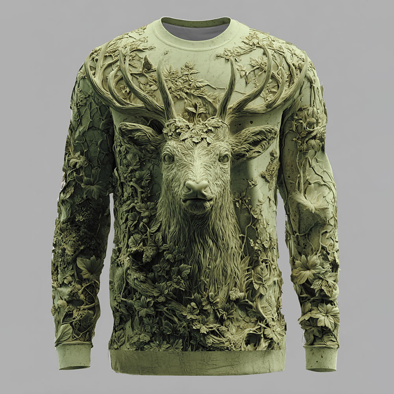 Men's Optical Illusion 3D Deer Sweatshirt Casual Long Sleeve Crew Neck Vacation Party Gift White Blue Brown Green Crewneck 3D All Seasons Designer S M L XL XXL XXXL