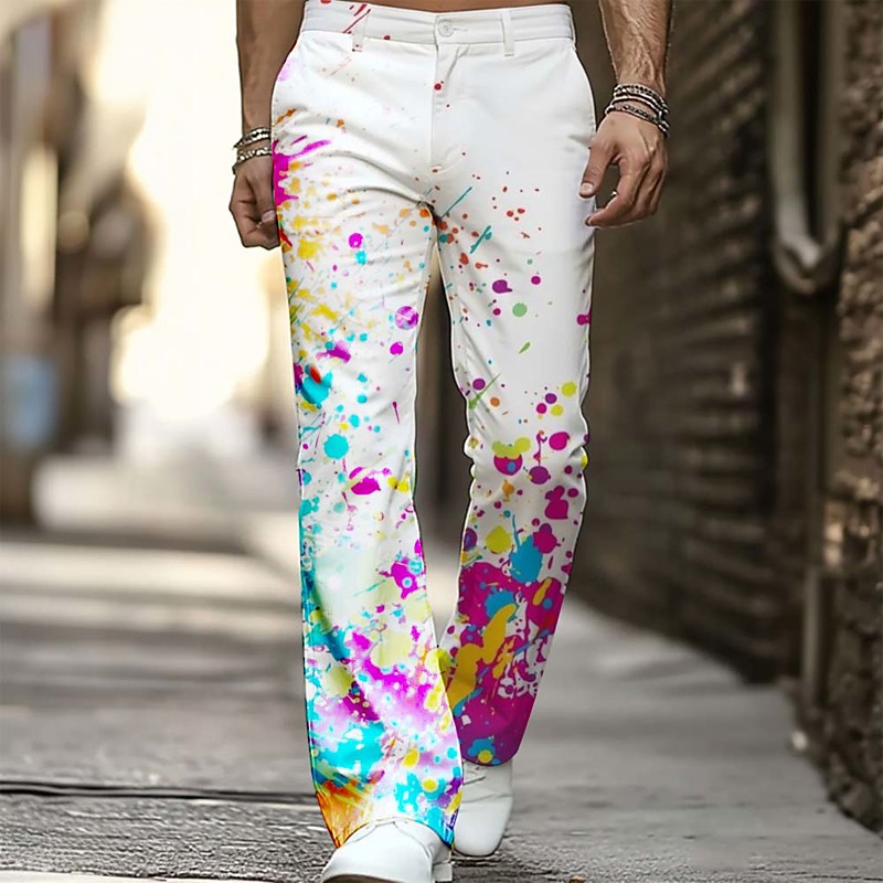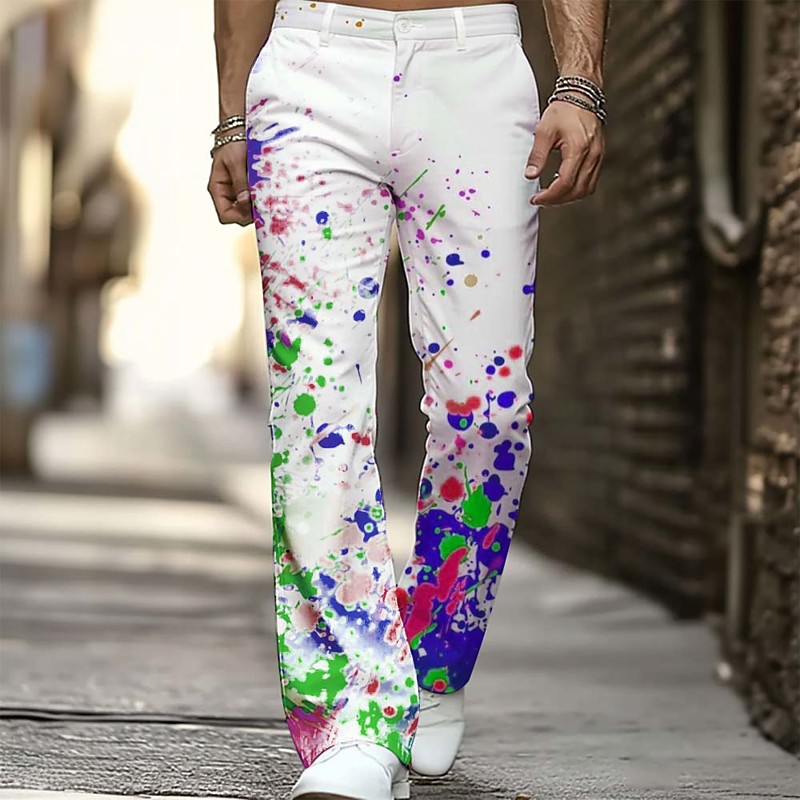 Men's Geometric Pattern Splash Ink Trousers Disco Pants 60s 70s Bell Bottoms Mid Waist Casual Outdoor Streetwear Side Pockets Flared Leg Pants Trousers Spring Fall 3D Print White 1 White White 2