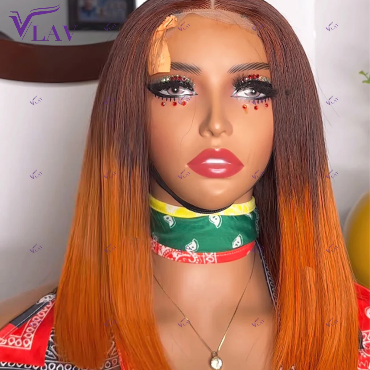 Brasilianisches reines Haar, gerade, gefärbte Highlights, 5 x 5 Lace-Closure-Perücken ohne Klebstoff, mit Pony, 13 x 4 Lace-Front-Perücke für Frauen