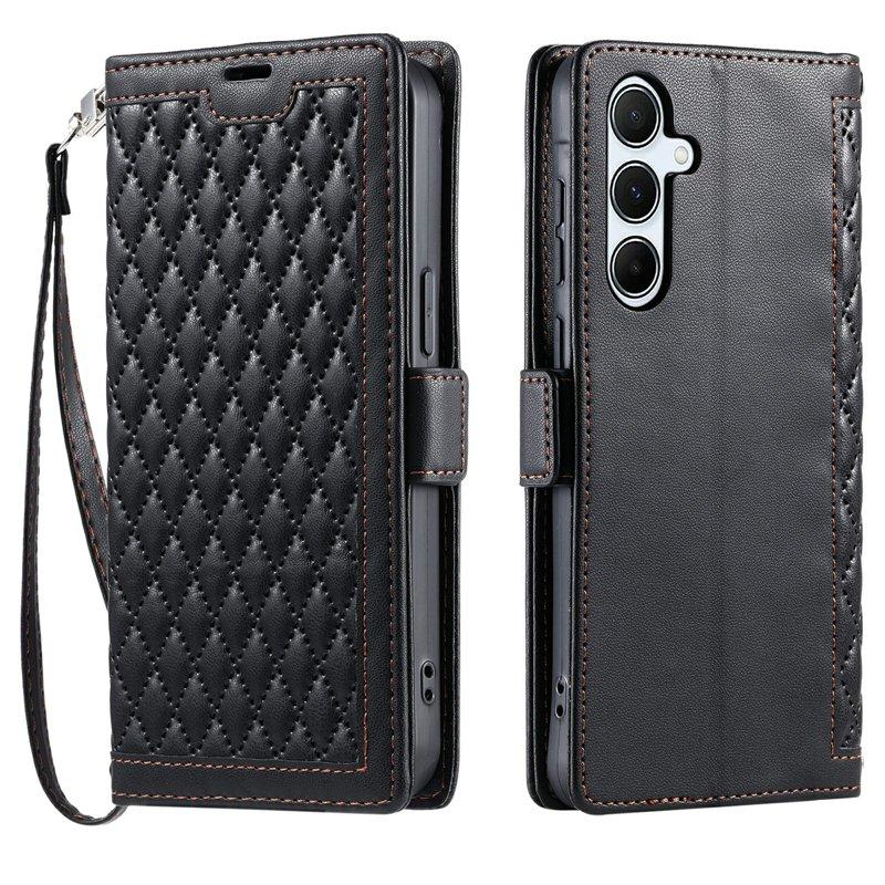 Samsung Galaxy A55 5G Plånboksfodral Konstläder Rhombus Textur - Svart