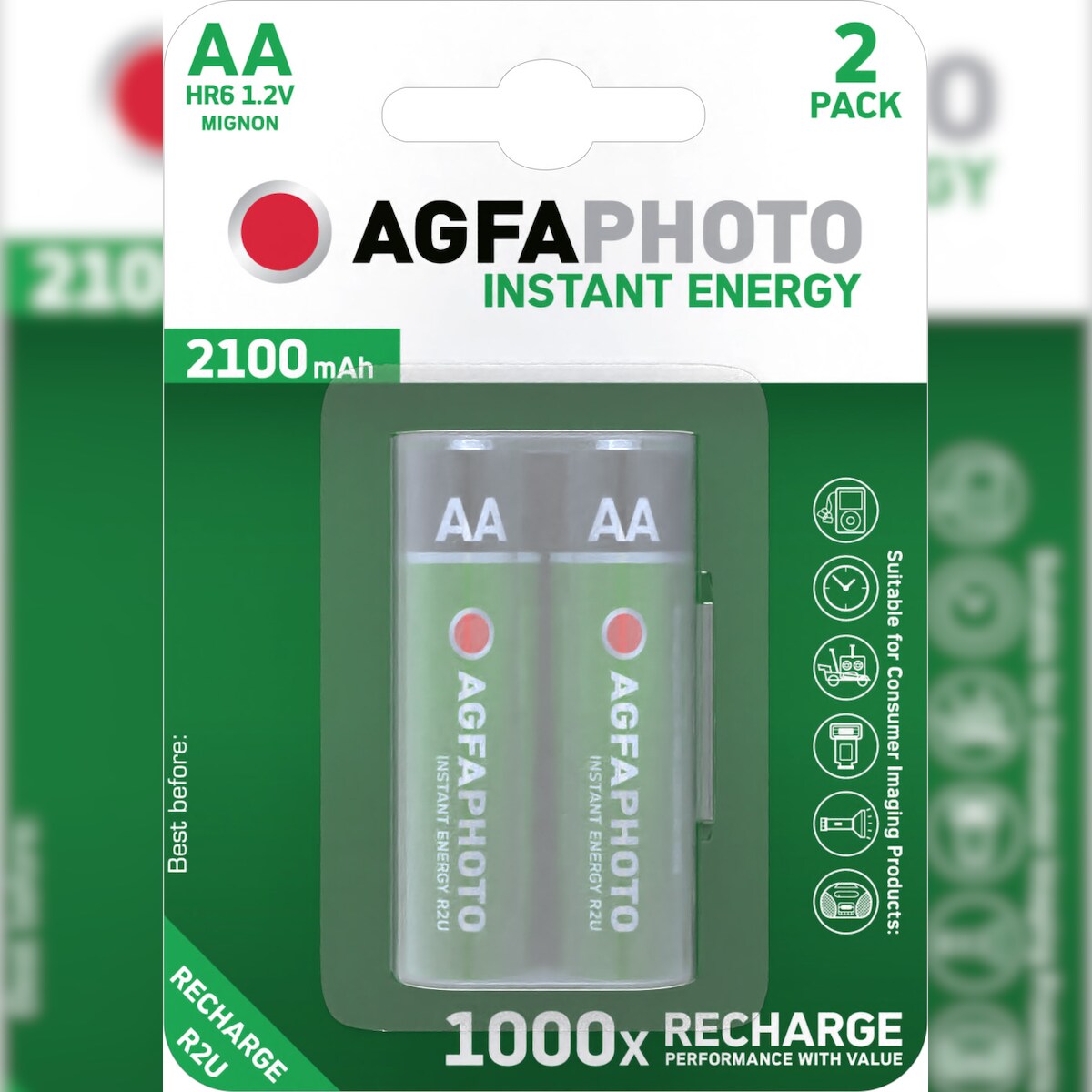 Agfaphoto Akku NiMH, Mignon, AA, HR06, 1.2V/2100mAh Instant Energy, Pre-charged, Retail Blister (2-Pack)