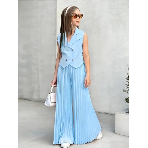 2 Stück Kinder Mädchen Einfarbig Gerafft Hemd Hose einstellen Ärmellos Mode Lässig Ab 4 Jahren Sommer Dunkelrosa Weiß Rosa