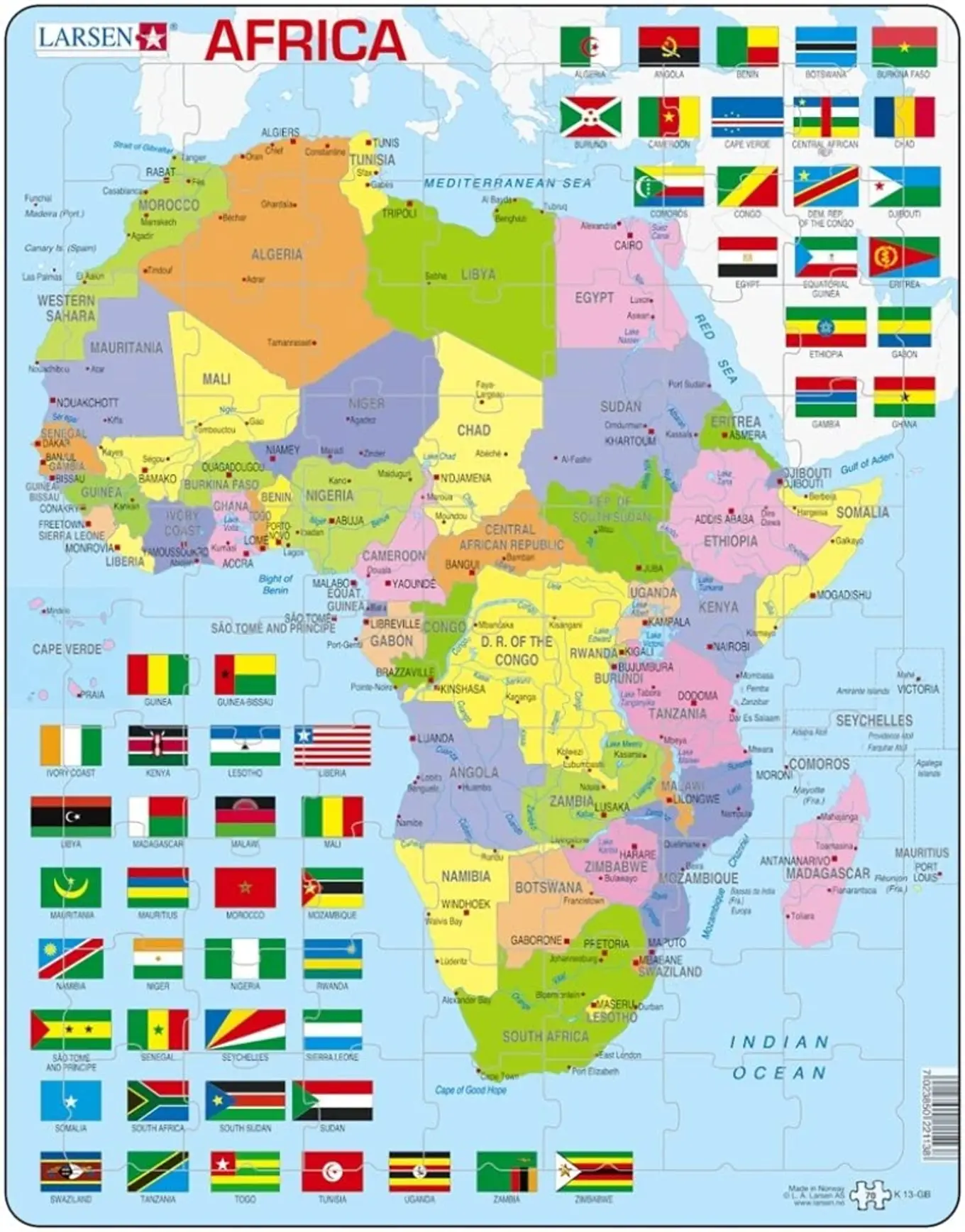 Larsen K13 Puzzle Afrika mit Flaggen - 70 Teile