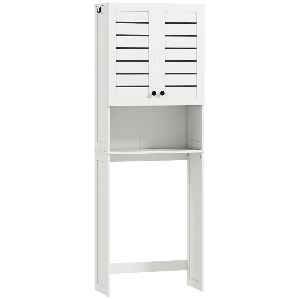 Mobile sopra wc con armadietto e ripiano aperto in legno bianco