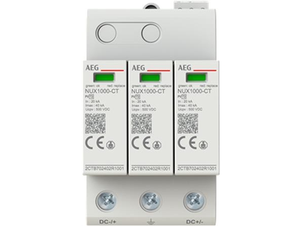 AEG NUX1000 - PV Transientbeskyttelse, T2, (L-L) 1000 V DC, max 8 / 20 µstransient afledningsstrøm 40 kA