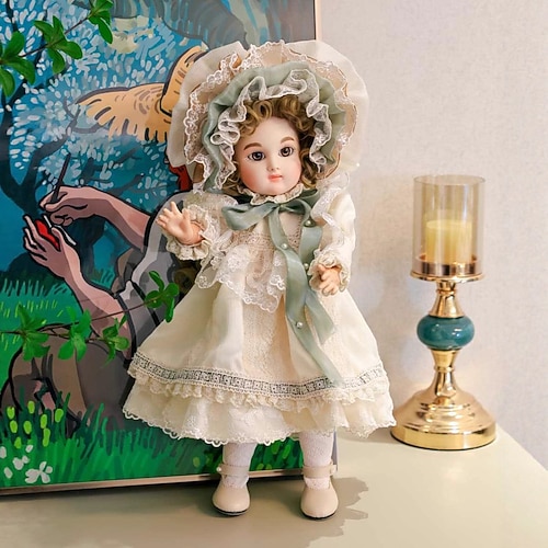 Bambole in porcellana vintage dipinte a mano bambole bisque della corte del palazzo 16 pollici regalo di Natale