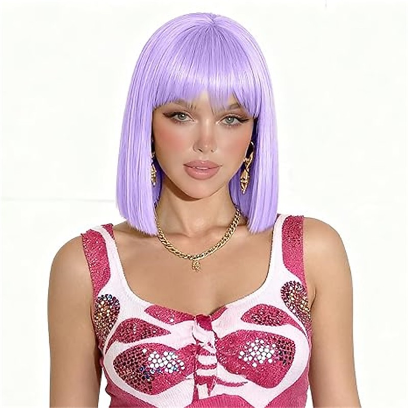 Blue Wig Short Straight Blue Bob Wig With Bangs10 Inch Synthetic Color Wigs For Women Natural Looking Costume Hair For Daily Party Cosplay