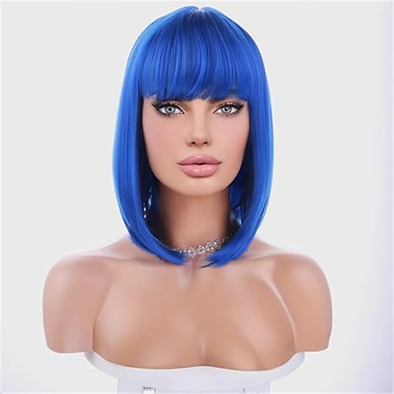 Blue Bob Wig with Fringe 12 Inch Short Straight Costume Wigs for Women Cosplay Party Halloween