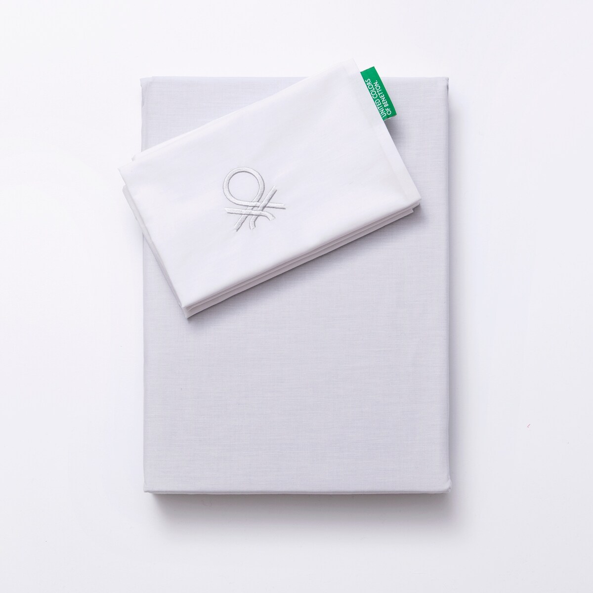 Benetton - 2-teiliges Bettwäsche-Set (Bettbezug 135 x 200 cm + Kissenbezug 80 x 80 cm), 200 Tc, 100 % Baumwolle, Weiß und Grau B&W Be