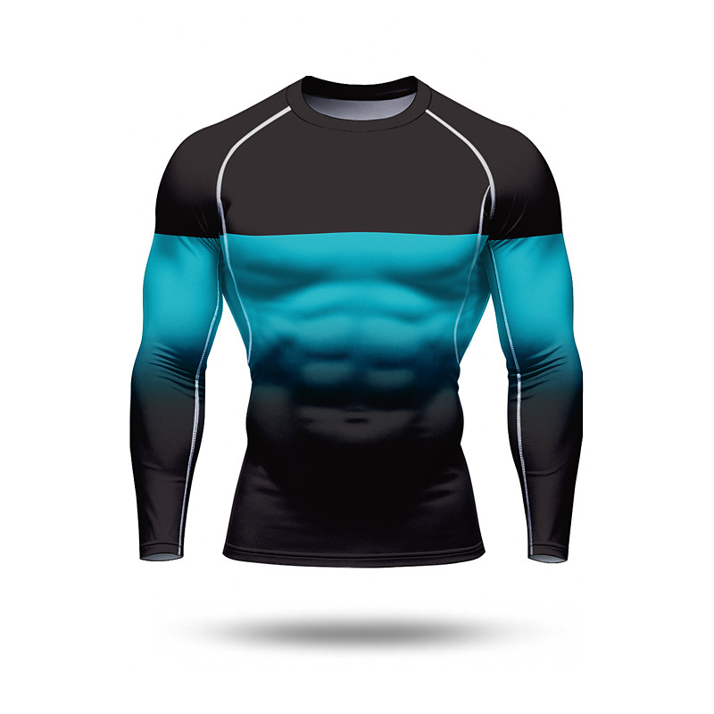 Men's Compression Shirt Running Shirt 3D Print Long Sleeve Base Layer Gradient Quick Dry Compression Power Flex Moisture Wicking Gym Workout Active Training Exercise Sportswear Activewear Blue Matcha