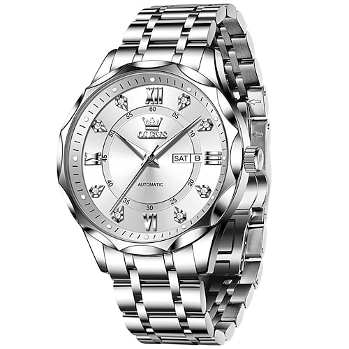 Il nuovo orologio meccanico automatico da uomo Olevs è decorato con calendario luminoso e display del giorno e è un semplice orologio sportivo da uomo impermeabile