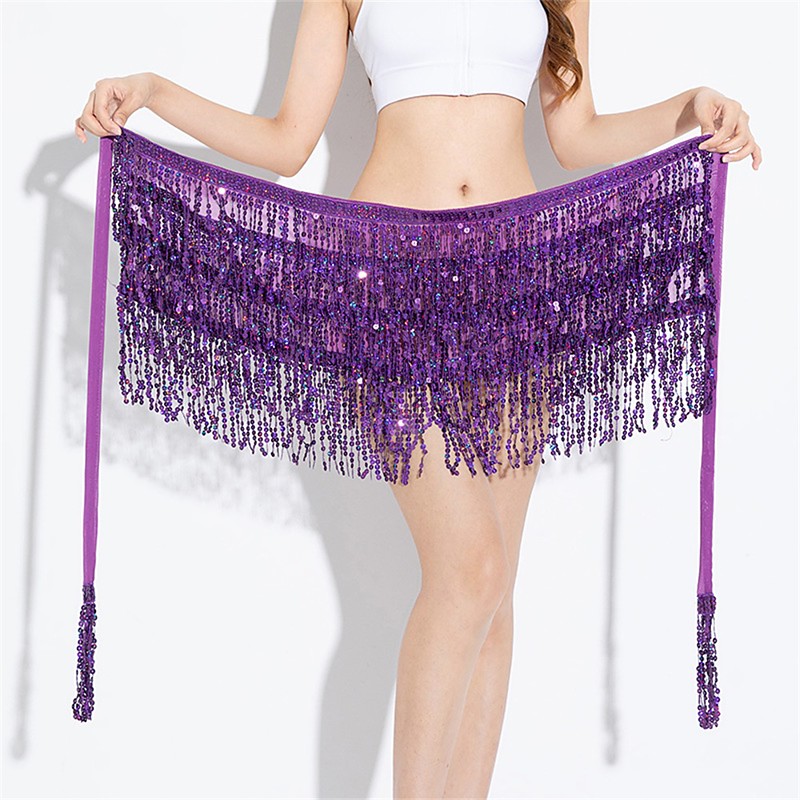 Carnival 2026Rio Carnival Samba Dancewear Belly Dance Skirt Sequin Tassel Skirt Wrap Sparkly Tinsel Fringe Skirts with Sequins and Coins Performance Costume Brazil Festival Performance Costume