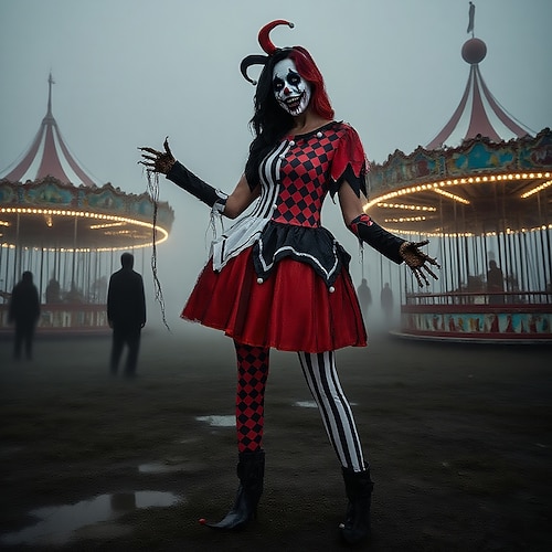 Costume di Carnevale 2026 Clown Giullare Carnevale Vestito Costume di fantasia Circo Costume Cosplay Adulti Per donna Halloween Carnevale Feste Performance Costume di Carnevale facile Vestirsi
