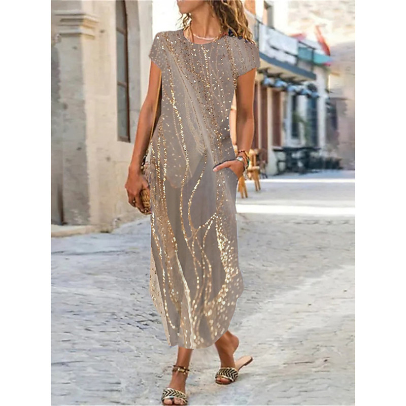 Women's Maxi Dress Shift Dress Ombre Marble Pocket Split Crew Neck Daily Date Short Sleeve Summer Spring