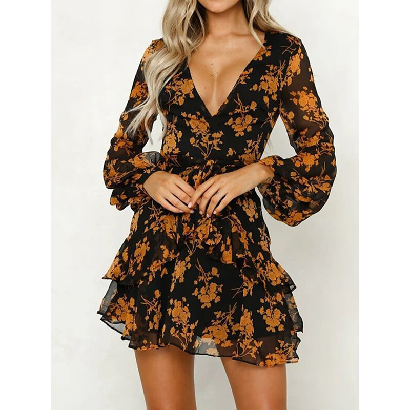 Women's Casual Dress Floral Print V Neck Mini Dress Stylish Casual Daily Date Long Sleeve Fall