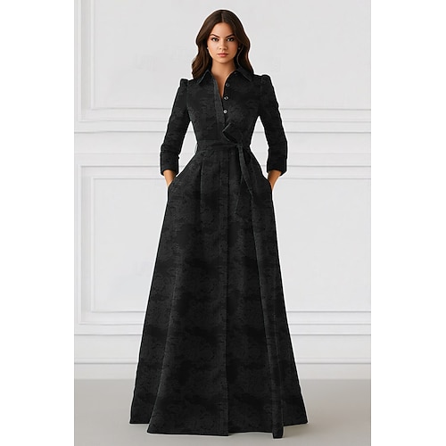 Abito a-line lungo fino al pavimento abito da sposa abiti formali abito madre della sposa maniche lunghe colletto camicia elegante vintage formale con fiocco(i)