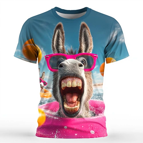 Herren Tiermotiv Esel Lustig T Shirt Kurzarm T-Shirt 3D-Druck Rundhalsausschnitt Hemd Übertrieben Designer Party Ferien Blau Blau 3# Blau 2# Sommer Frühling Bekleidung S M L XL XXL XXXL